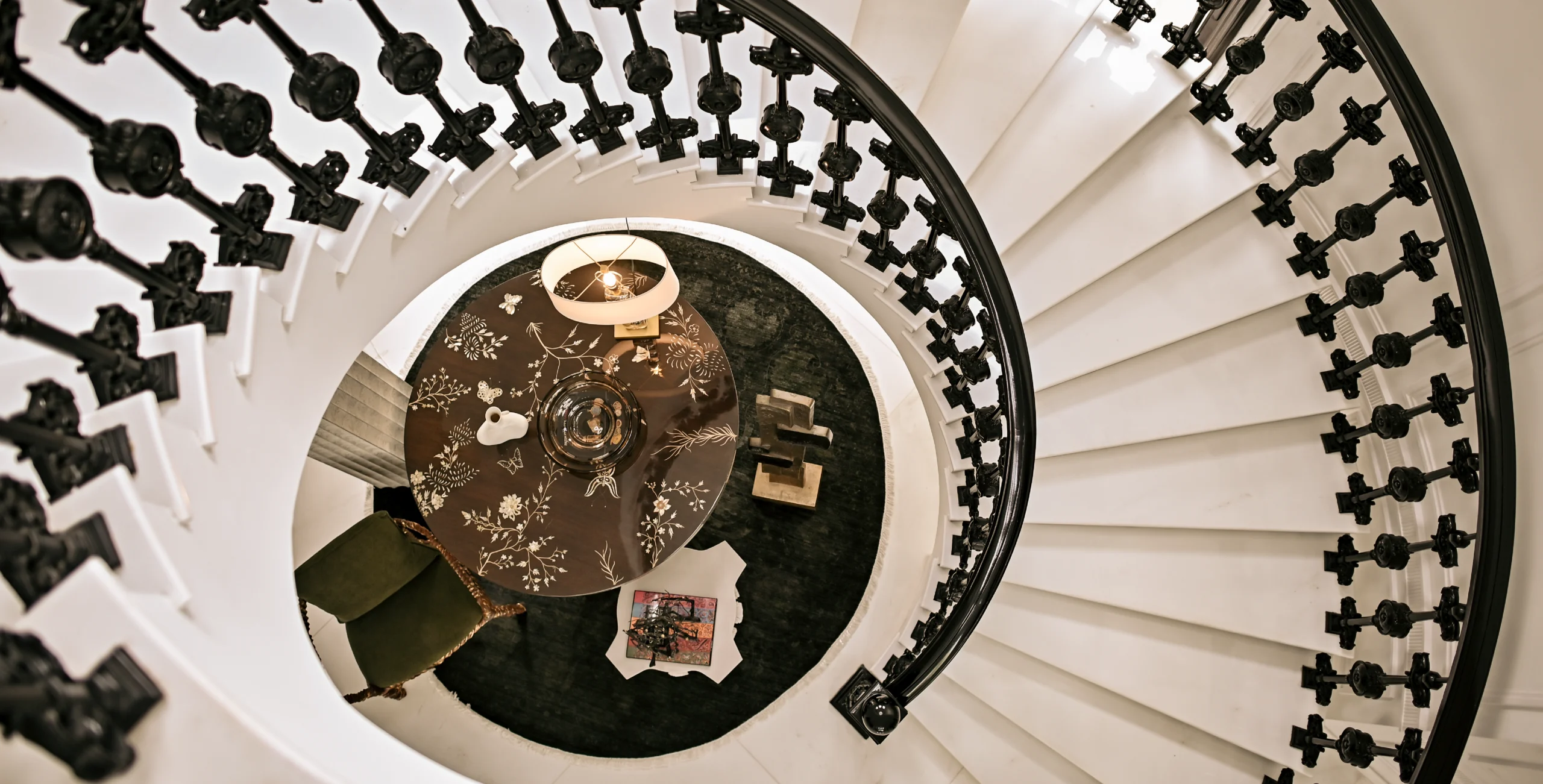 A renovation that fuses modern clarity with traditional charm. The whimsical staircase becomes the sculptural heart, while the double-height lounge fills the home with drama and light.
