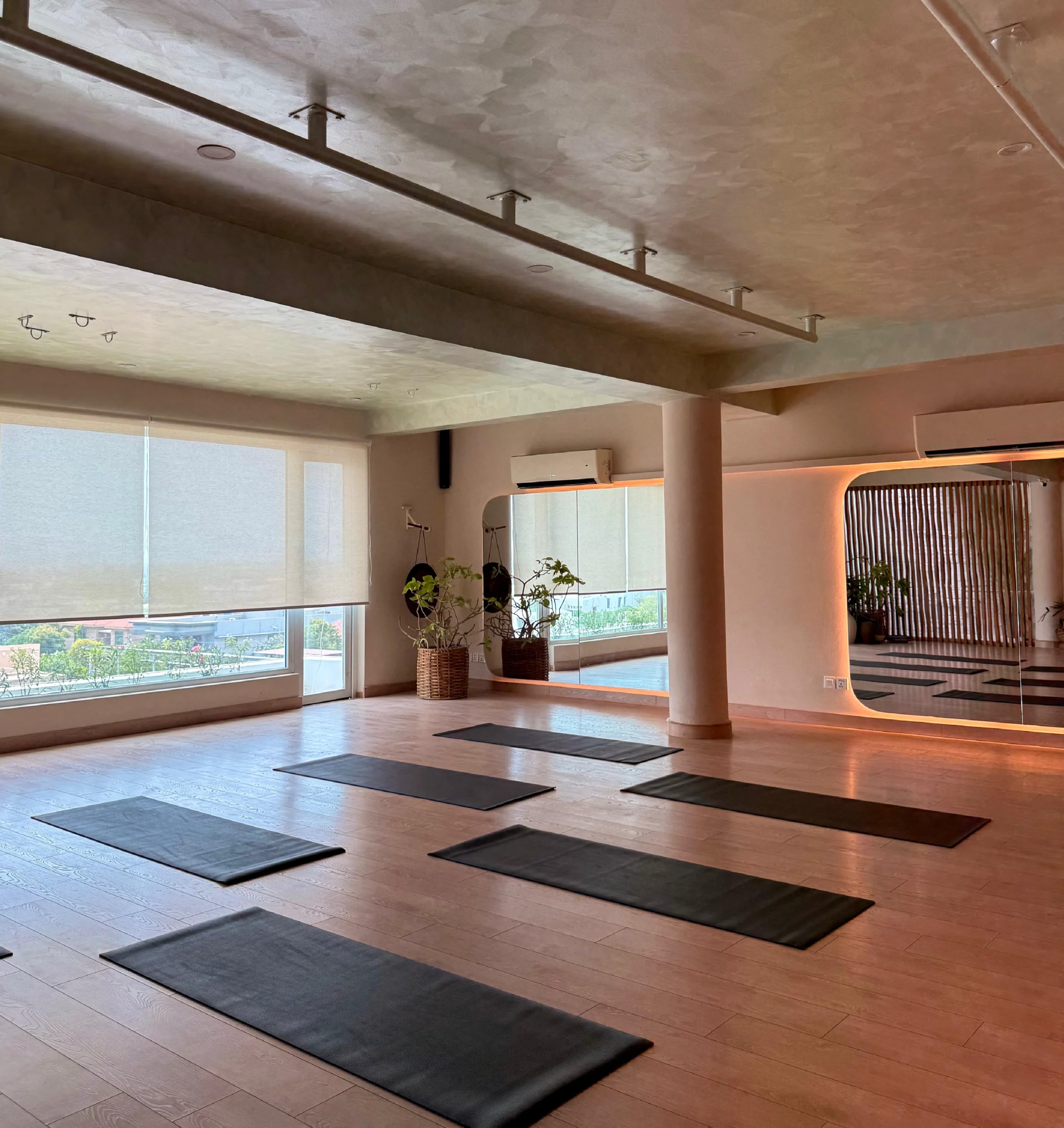 Hand painted blue botanicals and soft aqua notes soften the minimal interior, bathed in natural light while layered materials, reflective surfaces, and sculptural lighting create depth throughout in this young girl’s bedroom. Modern, magnetic, and refined, this home balances strength and softness with effortless restraint.